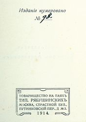 PDF Посвящено А. А. Альвингу (Смирнову), основателю журнала и издательства "Жатва". В расширенном предисловии в книге автор написал, что в журнале труд был опубликован "в меньшем объеме". Также можно отметить, что книжный вариант отличается компоновкой материала.